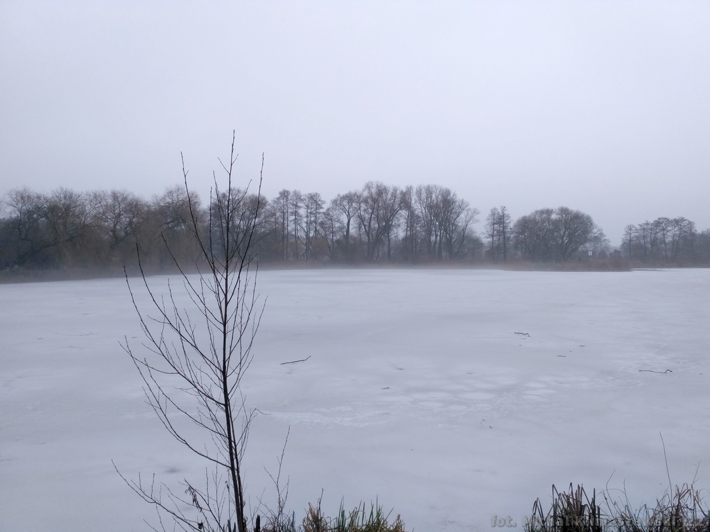 Święta, jedzonko, leżenie, jedzonko... No nie! Zdecydowanie lepiej pokręcić korbą. Niewiele zdjęć z tej przejażdżki, to prawda, bo wszystko w tonacji ciemności i szarego (zwłaszcza, gdy zaczął już zapadać zmrok), ale było niezwykle przyjemnie. Nad stawami w Zalesiu unosił się tajemniczy opar, rzeka z wolna (ale za to - napełniona wodą jak należy) przetaczała się ku swojemu ujściu - a ja przemierzałem okoliczne miejscowości i zagajniki. Przemierzanie owo było nierozerwalnie związane z pokonywaniem przeszkód błotnych i dlatego w połowie trasy rower trafił nad rzekę celem lekkiego liftingu (i zrzucenia błotnej nadwagi).